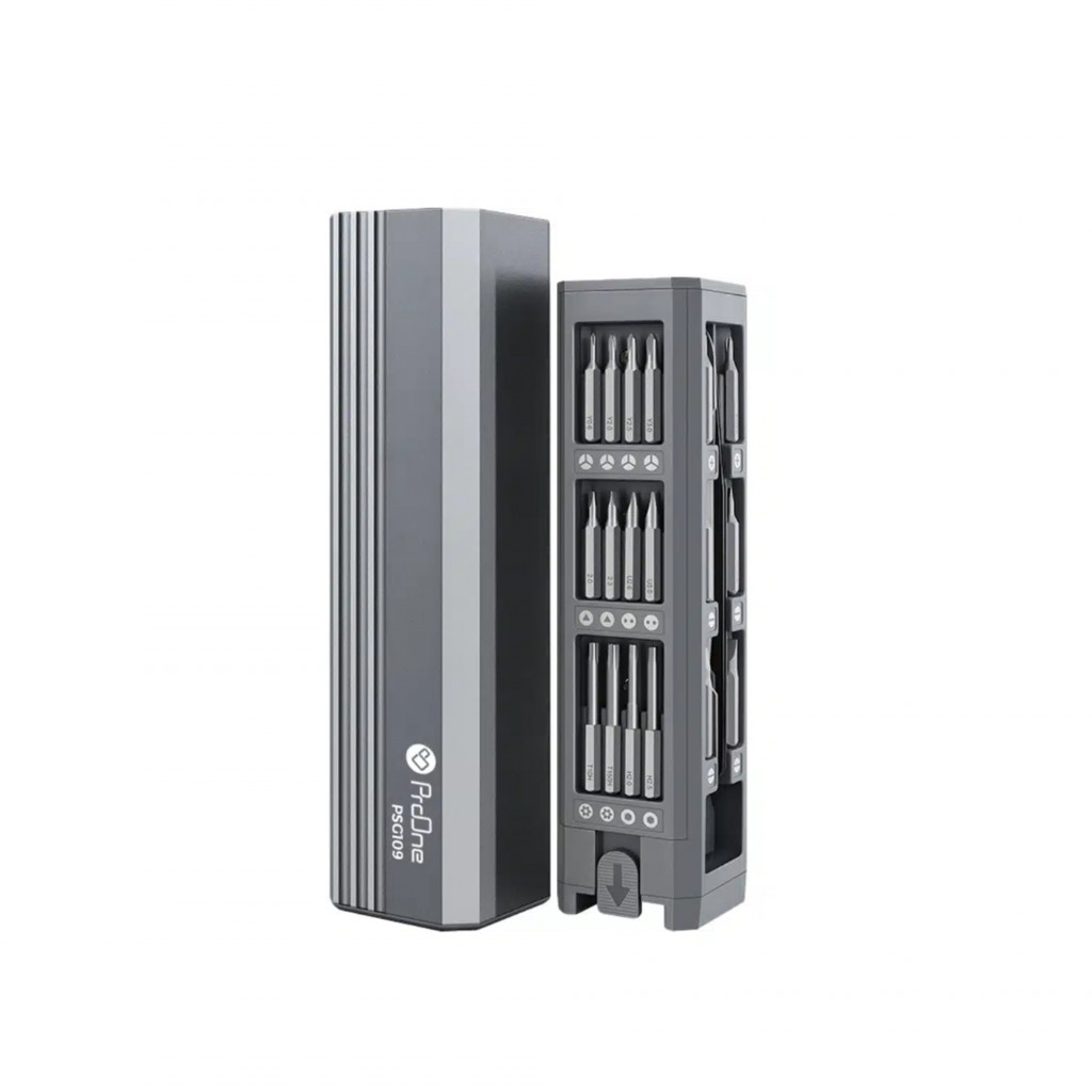 تصور کنید در حال باز کردن یک گجت دیجیتال مثل هدفون بیسیم، لپتاپ، دستهی بازی یا حتی اسباببازیهای الکترونیکی هستید! معمولاً اولین چیزی که مانع کارتان میشود، یک پیچ خاص و ریز است که با پیچ گوشتی های معمولی باز نمیشود و حتی اگر بشود، خطر آسیب به قطعه وجود دارد. اینجاست که ست پیچ گوشتی پرووان مدل PGS109 عملکرد ظریف و دقیق خودش را نشان میدهد. کیت شارژی مدل PGS109 مجموعه ای از پیچ گوشتی و سری پیچ گوشتی است که برای تعمیرات ظریف و دقیق به صورت حرفهای طراحی شده است. با خرید عمده ست پیچ گوشتی پرووان این محصول ارزشمند و کاربردی را به عنوان هدیه سازمانی به تکنسینهای حرفهای خود هدیه دهید. همچنین با خرید کیت پیچ گوشتی شارژی پرووان مدل PGS109 عملکرد فوق العاده یک ابزار کامل با تمام تجهیزات جانبی لازم را بدون نیاز به تعمیرکار ماهر در خانه احساس کنید.