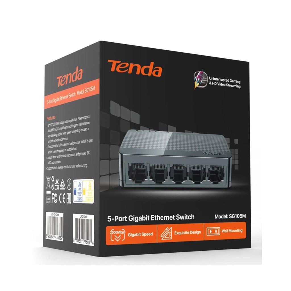 SG105، طراحی شده توسط کمپانی Tenda، سوئیچ های اترنت با تمام پورت های گیگابیتی است.
